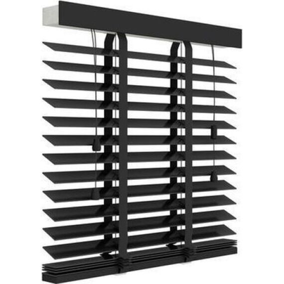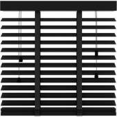 Deze Decosol 947 mat zwarte houten jaloezie 140 x 220 cm is een standaard maat en bestaat uit extra brede houten lamellen van