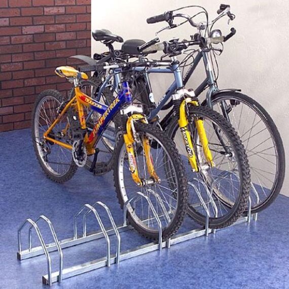 worden geplaats in de zinken fietsenstandaard. Dit rek is stevig en compact, en doordat de fietsen netjes opgeborgen zijn