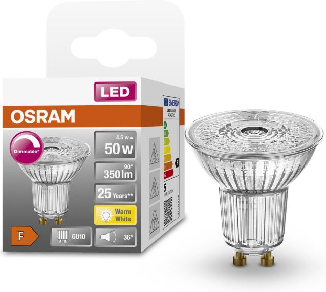 Deze LED spot van Osram is voorzien van een GU10-fitting en heeft een vermogen van 4,5W. Het warme licht van deze