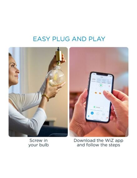kunt ze bedienen met je smartphone of stem, zelfs als je niet thuis bent. WiZ lampen werken op je eigen wifinetwerk. Meer