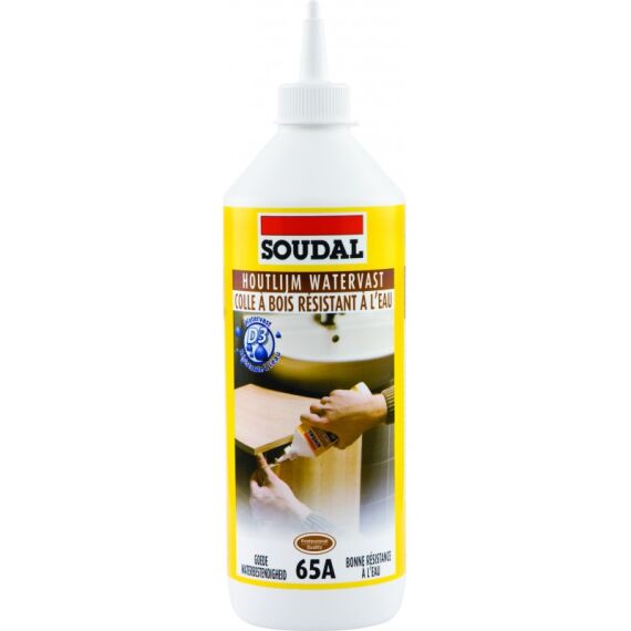 Soudal Watervaste Houtlijm 65A is een gebruiksklare, snel afbindende dispersielijm met een goede watervastheid (D3).