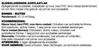 Zijdeglanzende acrylaatlak, toepasbaar op hout, hard PVC, ferro metaal (enkel binnen) en non-ferro metaal mits gebruik van